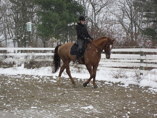 Here is a practice test of third level test 1 that I rode on April 27, 2013.  I then submitted the test for an online evaluation by Judge Natalie Lamping at horseshow.com. I was pleasantly surprised to get a 63.2% (which may be a bit generous in the spirit of a schooling show) from Judge Lamping. This test was before my "breakthrough" of collecting the canter the next weekend. She correctly notes that the canter still needs a good bit of work. However, our turn on haunches have improved dramatically from that year, which is great since they are a coefficient score! My right flying change received a 7, and if I can line up the left one to be clean, it is an even better change. See my scores and comments from Natalie Lamping below: Apr 27th, 2013 April Dressage Festival 2011 USEF Level 3 Dressage - Test 1 Judged by  Natalie Lamping Featuring  Lindsey S Score: 241/380 (63.29%) 2nd place Overall Rows Test Rows # Tests Score Coef Err Comments 1 A ...